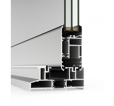 Posibilitatea folosirii tocului cap la cap sau perimetral. Incorporeaza noua tipologie GALANDAJ dezvoltata pentru a face posibila deschiderea integrala a spatiului prin ascunderea totala a foilor in camera peretelui cladirii. Se obtine astfel o suprafata de deschidere de 100%.
