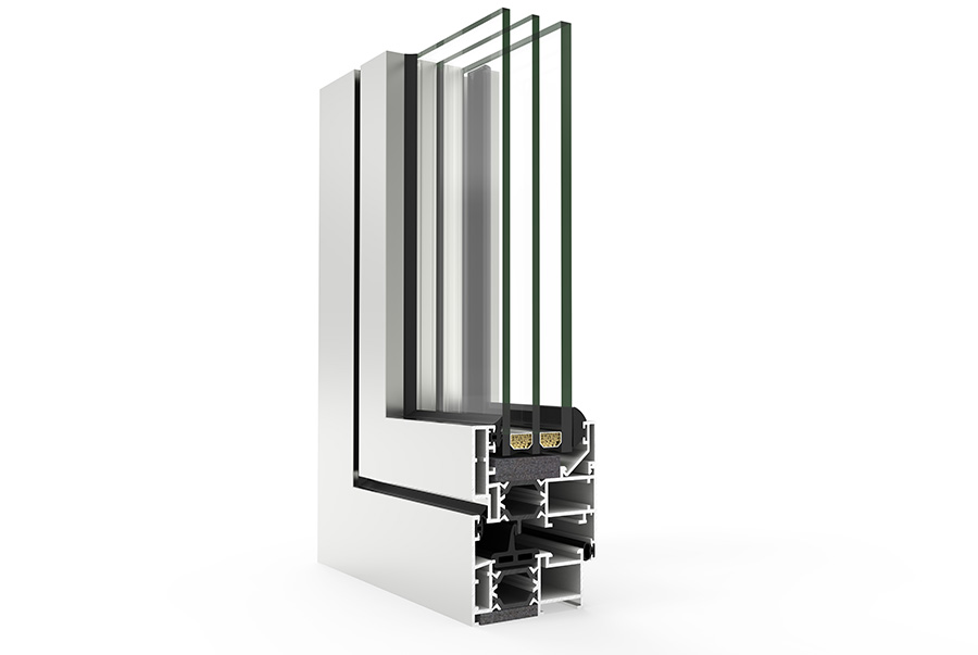 Sistem cu deschidere batantă, cu adâncime a tocului de 60 mm, echipat cu bare din poliamidă de 24 mm, care oferă un confort termic și acustic ridicat, atingând o atenuare a zgomotului de până la 48 dB.