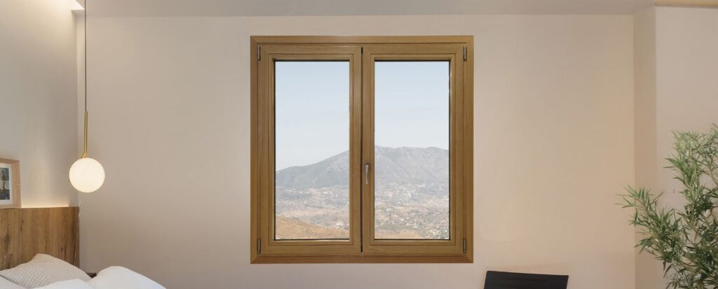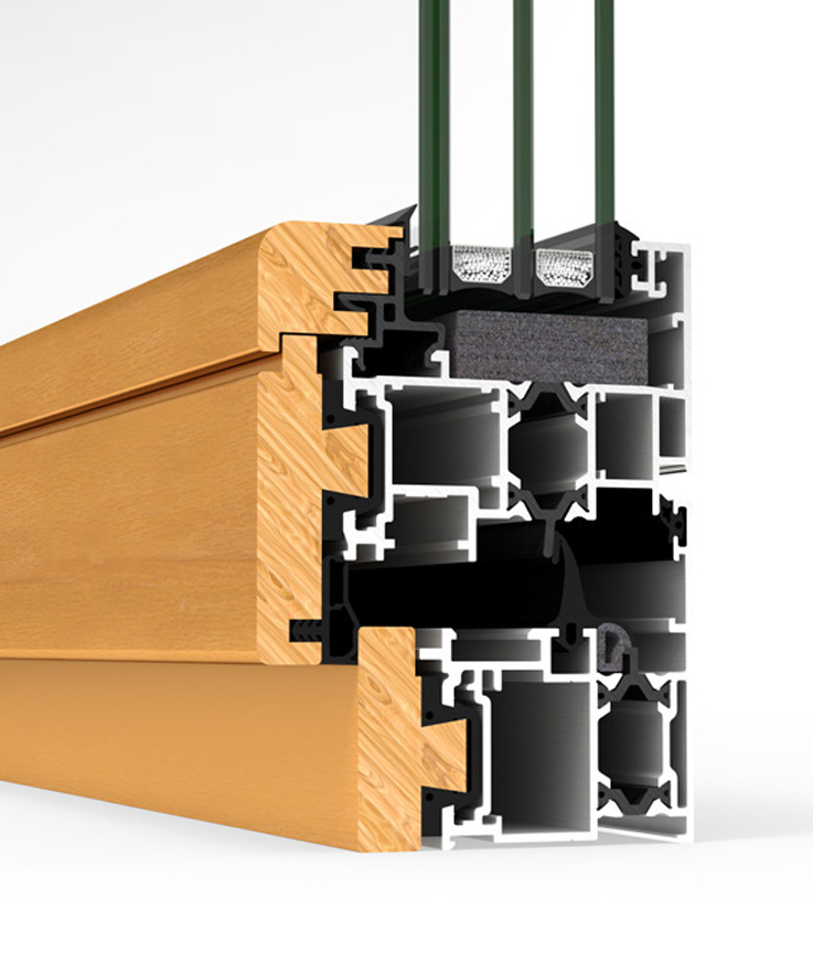 Fereastră mixtă cu barieră termică, care combină performanțele excelente ale aluminiului la exterior cu căldura și designul lemnului la interior. Pentru fața exterioară se poate alege orice finisaj din gama largă CORTIZO (vopsire în câmp electrostatic sau anodizare). Fața interioară este disponibilă în stejar american, sapeli, pin mellis și alte opțiuni la cerere, folosind întotdeauna lacuri ecologice, fără solvenți, transparente și satinate.